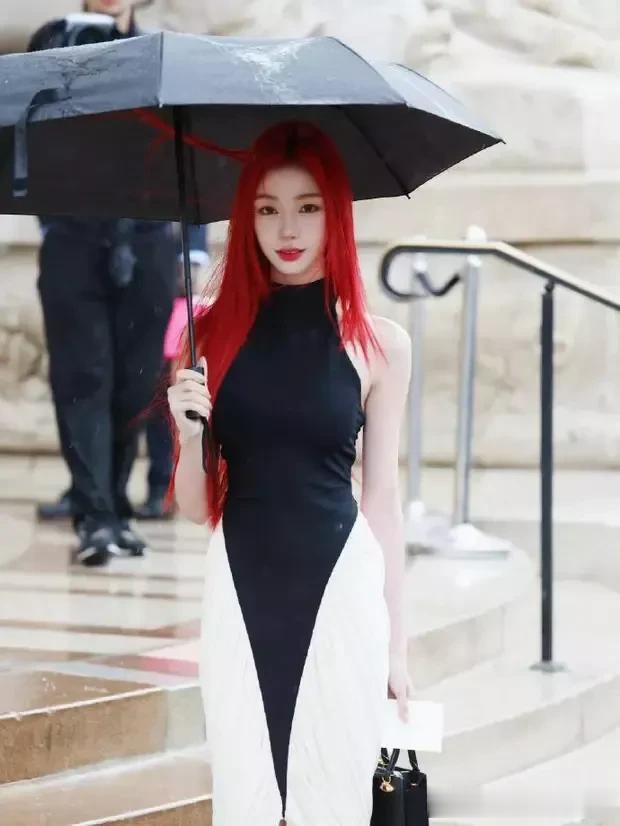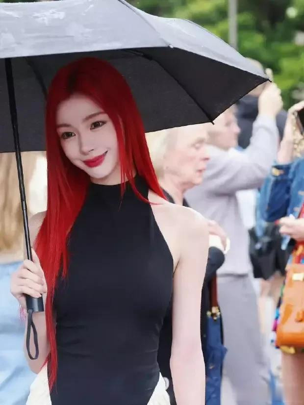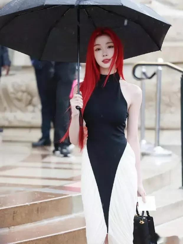 而当易梦玲撑伞的那一刻,更是气场全开,宛如一位从古代画卷中走出的仕女,优雅中透着不羁,温婉中藏着力量。那把伞,不仅为她遮挡了风雨,更成为了她气质的延伸,让她在人群中独树一帜,成为不可忽视的存在。